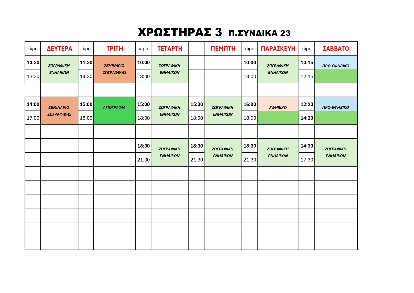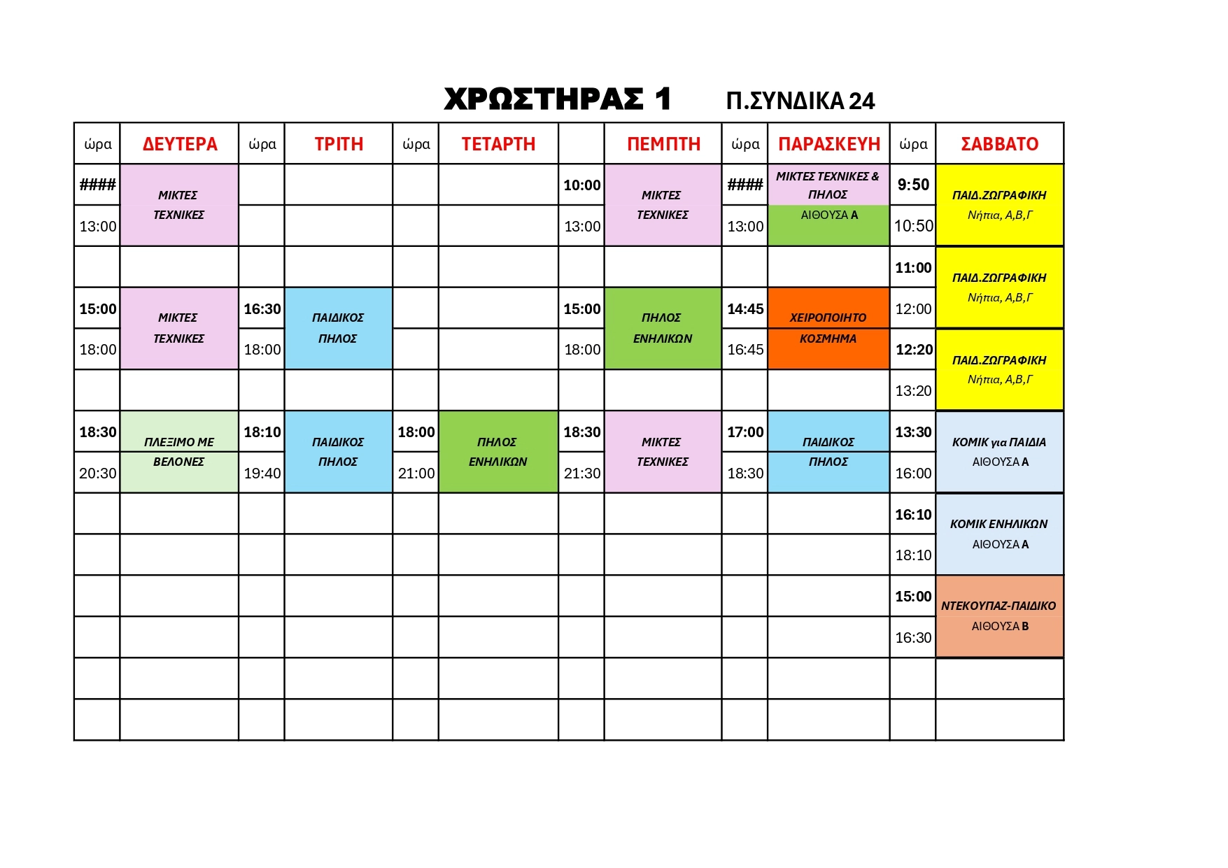 Το εργαστήριο εικαστικών και εφαρμοσμένων τεχνών ΧΡΩΣΤΗΡΑΣ ανακοινώνει τις ημέρες και ώρες που θα λειτουργήσουν ΘΕΡΙΝΑ ΤΜΗΜΑΤΑ ΤΕΧΝΗΣ ΜΕΙΚΤΩΝ ΜΕΣΩΝ και ΚΟΣΜΗΜΑΤΟΣ, για τον μήνα ΙΟΥΛΙΟ.