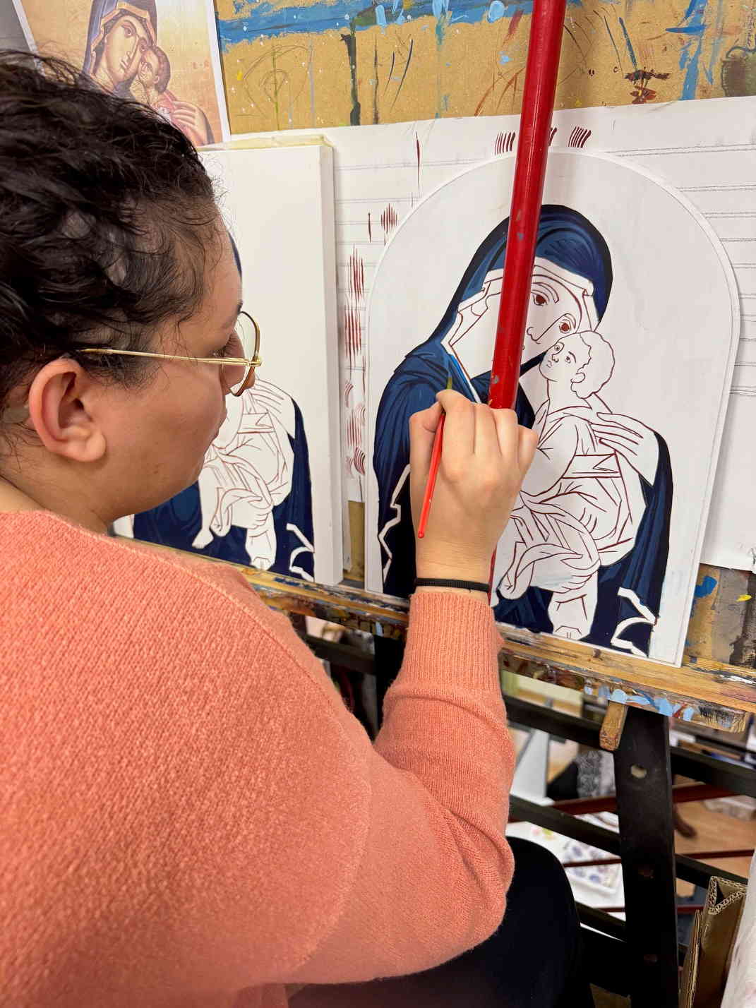 Στον «Χρωστήρα», στο τμήμα Αγιογραφίας, διδάσκουμε την τέχνη της φορητής εικόνας πάνω σε ξύλο και παράλληλα πολλές τεχνικές που θα βοηθήσουν τον εκπαιδευόμενο να έρθει κοντά στην βυζαντινή παράδοση και να ολοκληρώσει έναν πλήρη κύκλο σεμιναρίων.
