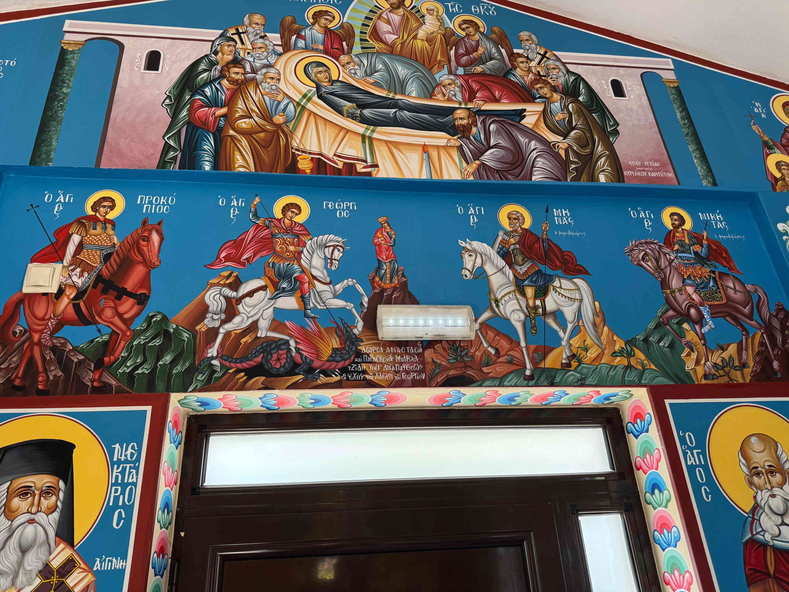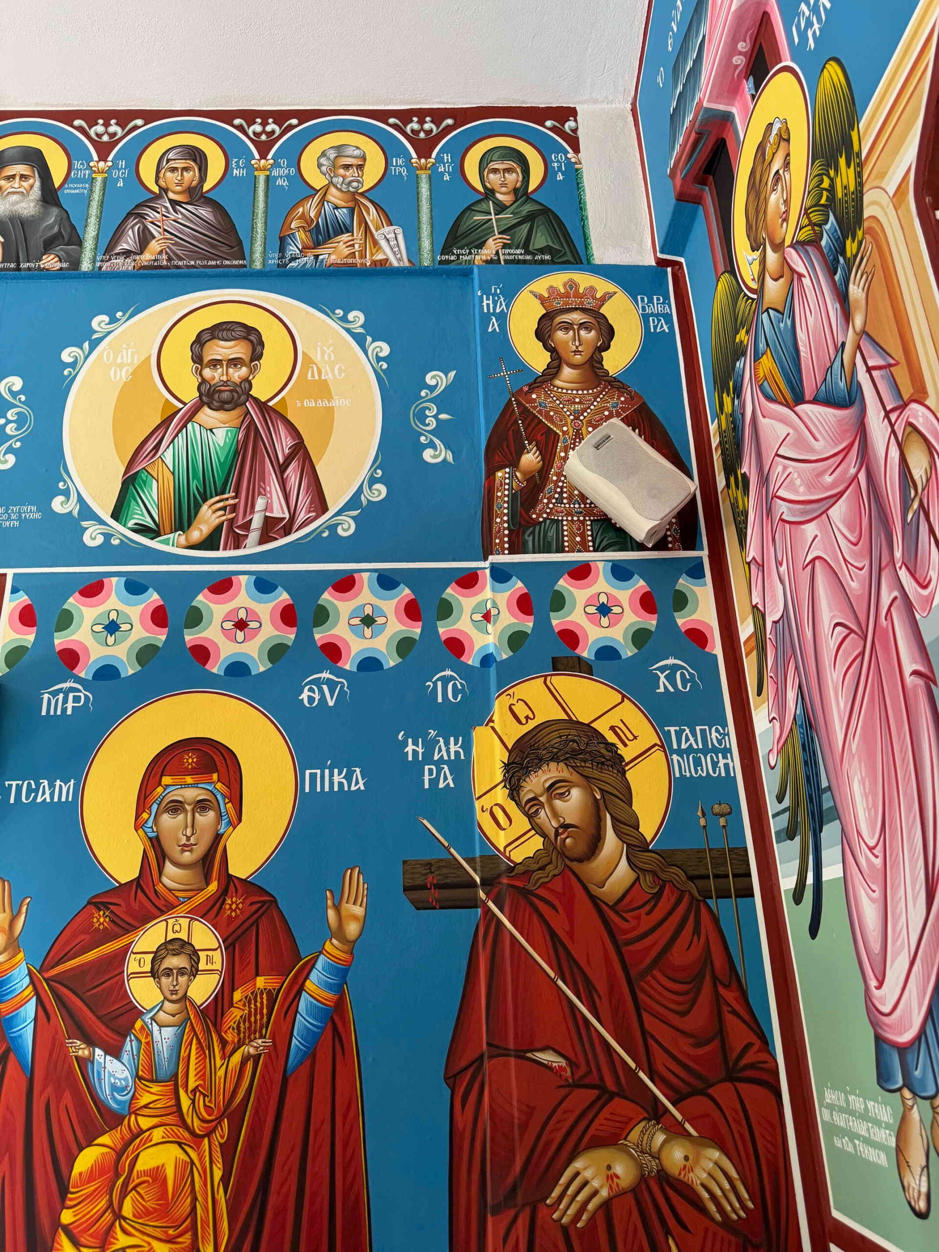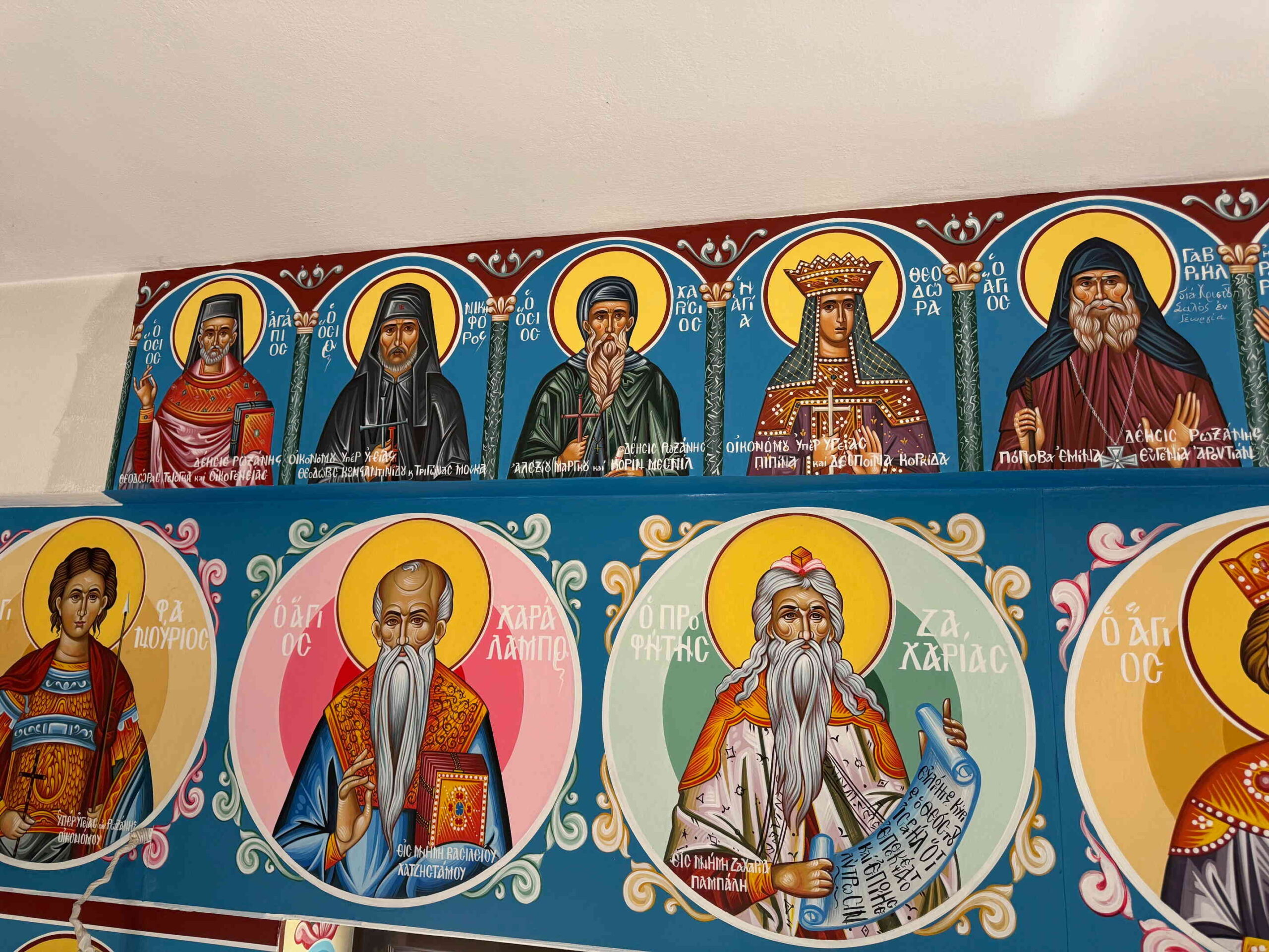 Επόμενες εικόνες: ο Χριστός με το Ευαγγέλιο, ο Ιωάννης ο Πρόδρομος, η Αγία Άννα, ένας μακρυγένης ασπρογένης άγιος της επιλογής σας, ο Άγιος Γεώργιος ή ο Άγιος Δημήτριος σε μπούστο και σε παράσταση (η επιλογή είναι ενδεικτική και μπορεί να γίνει αντικατάσταση).