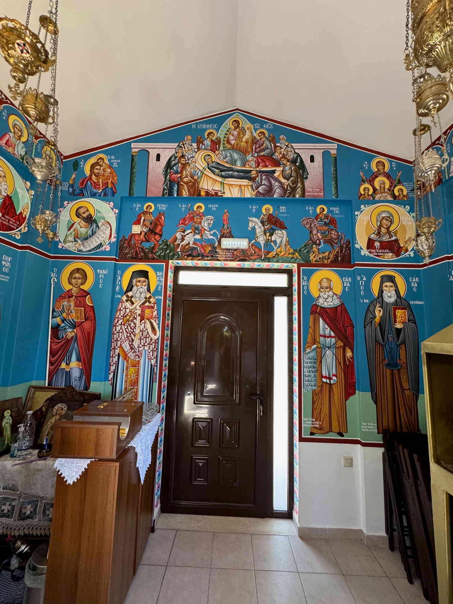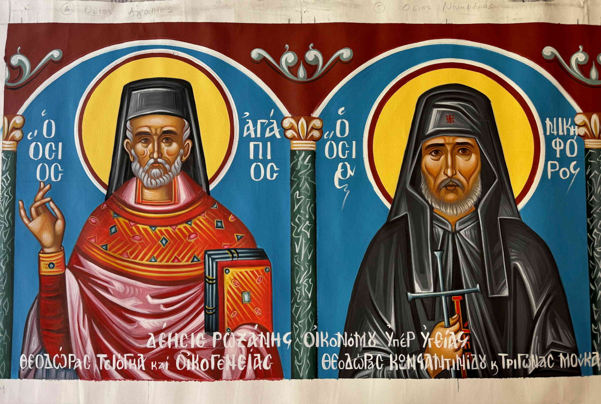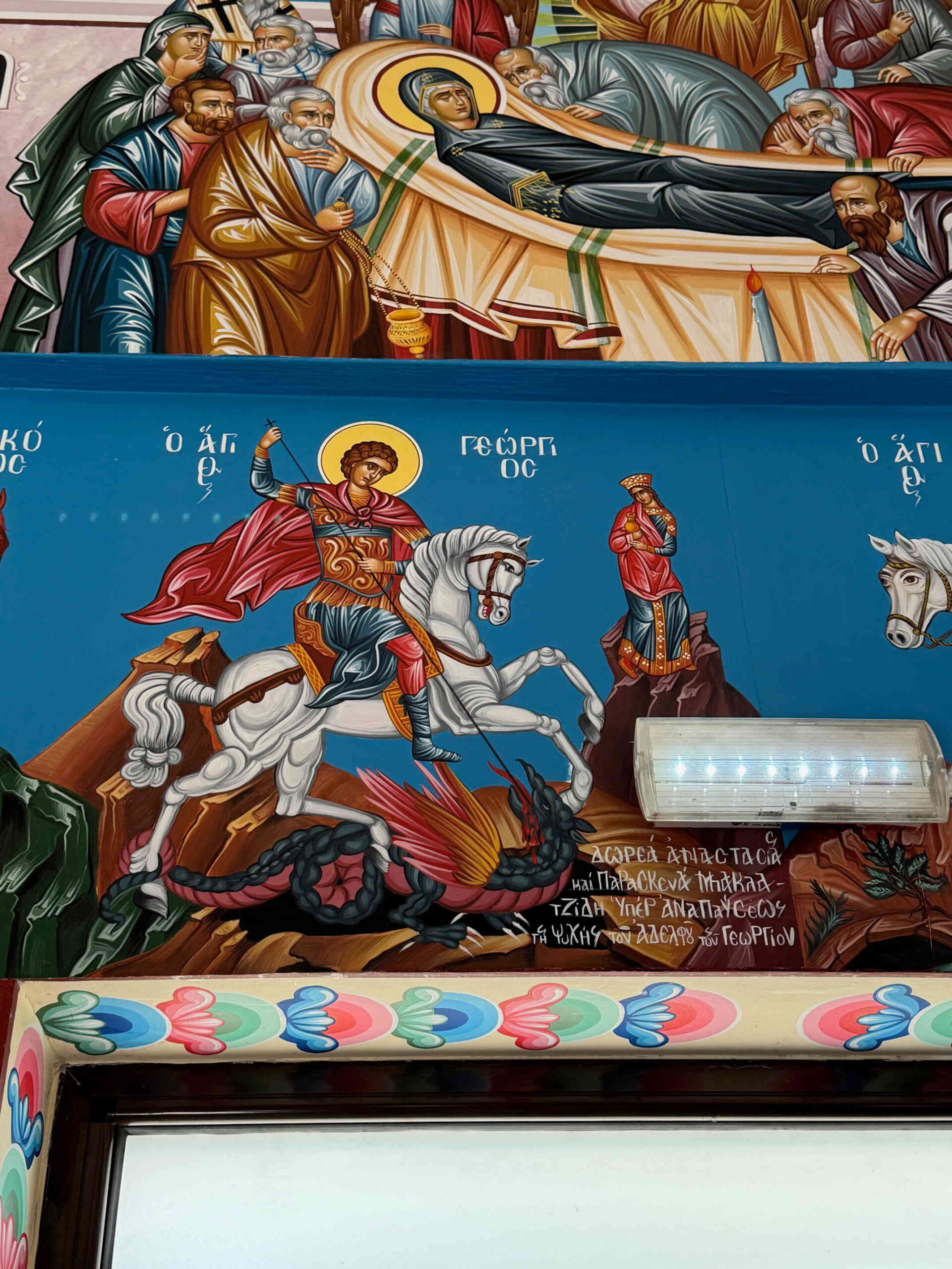 Επόμενες εικόνες: ο Χριστός με το Ευαγγέλιο, ο Ιωάννης ο Πρόδρομος, η Αγία Άννα, ένας μακρυγένης ασπρογένης άγιος της επιλογής σας, ο Άγιος Γεώργιος ή ο Άγιος Δημήτριος σε μπούστο και σε παράσταση (η επιλογή είναι ενδεικτική και μπορεί να γίνει αντικατάσταση).