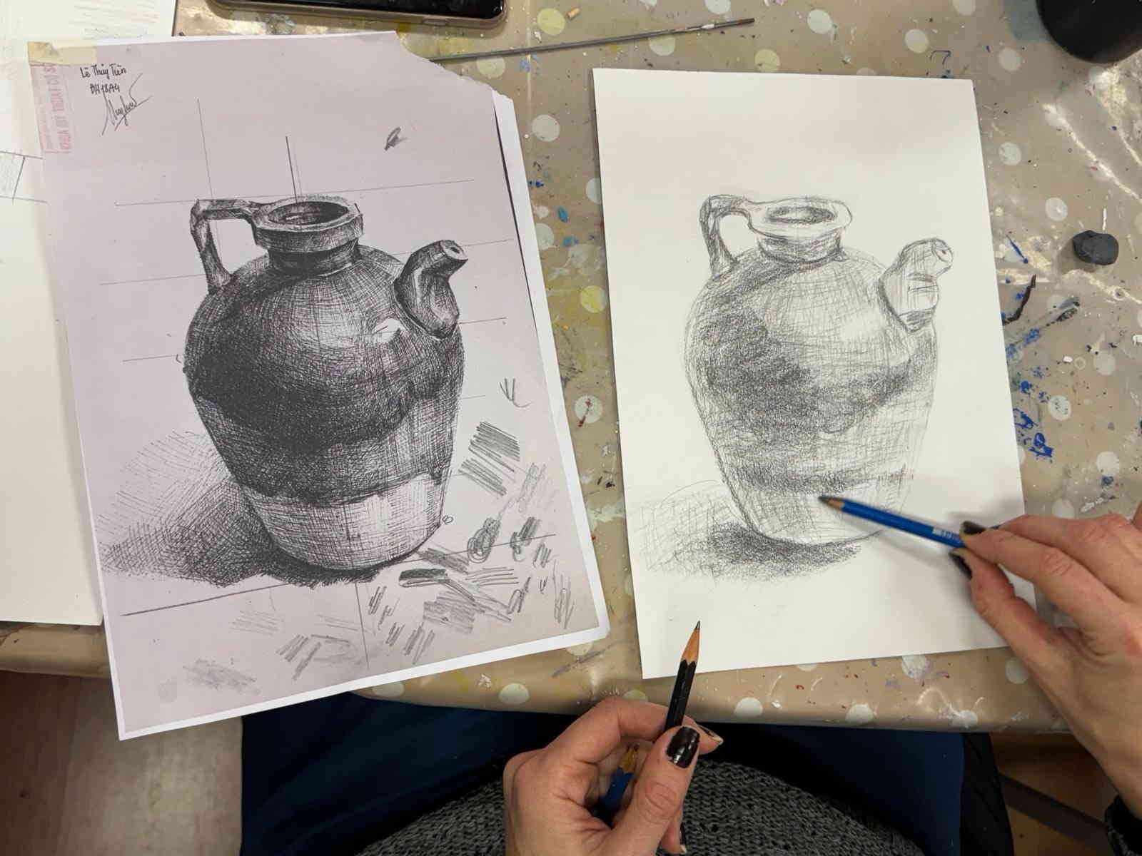 Το ελεύθερο σχέδιο είναι η βάση για να έχουμε ένα ωραίο αποτέλεσμα στην ρεαλιστική ζωγραφική. Για τον λόγο αυτό ξεκινάμε τα μαθήματα με βασικές αρχές σχεδίου, έτσι ώστε ο εκπαιδευόμενος να μπορεί να μεταφέρει στην ζωγραφική του επιφάνεια το σχέδιο του έργου που θα φιλοτεχνήσει, χωρίς την χρήση μεθόδων όπως πχ η πατιτούρα, αλλά με την χρήση της «βελόνας», ενός απλού οργάνου που θα μάθει να χειρίζεται.