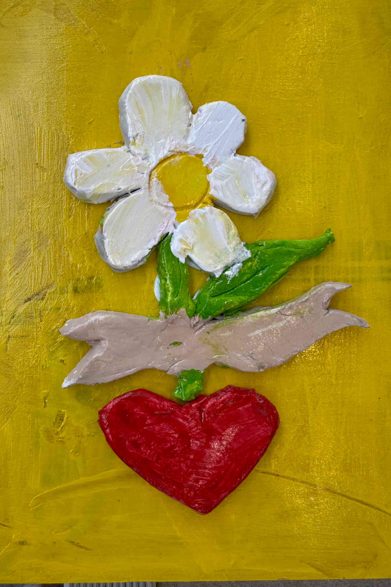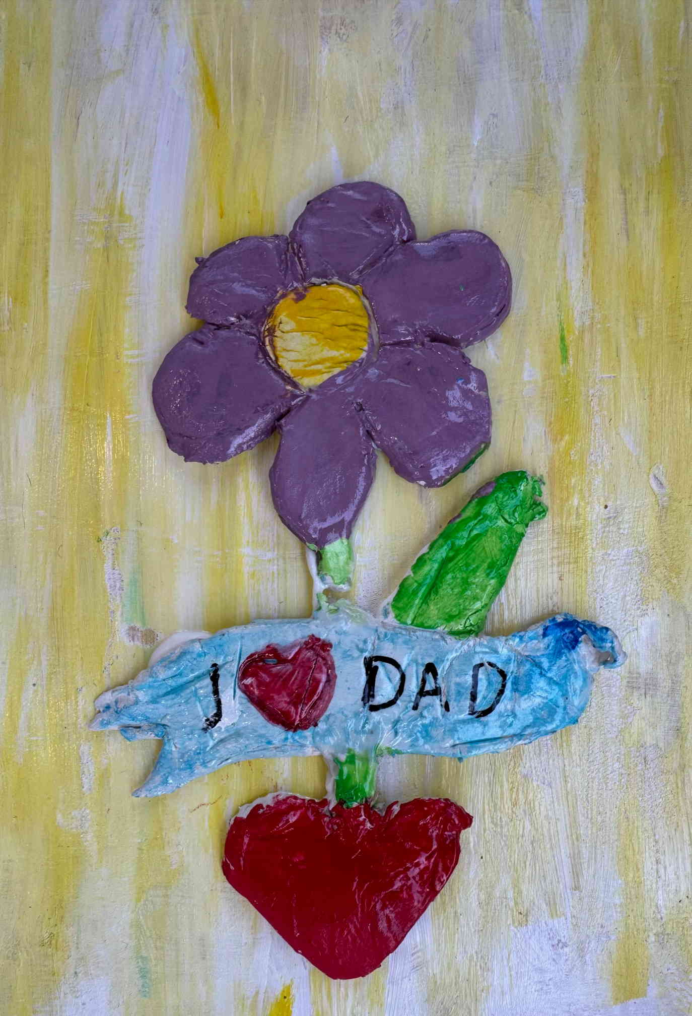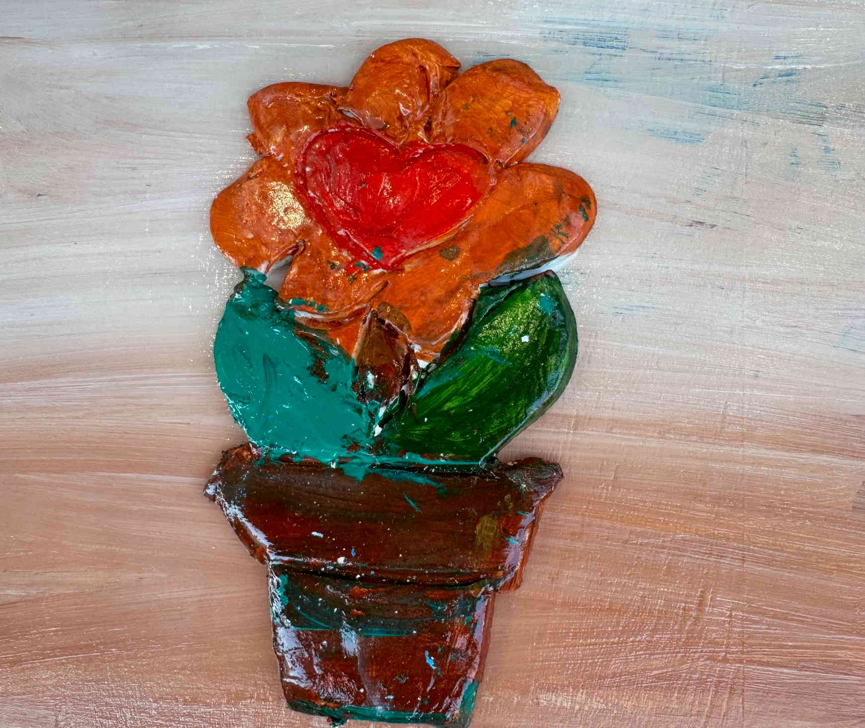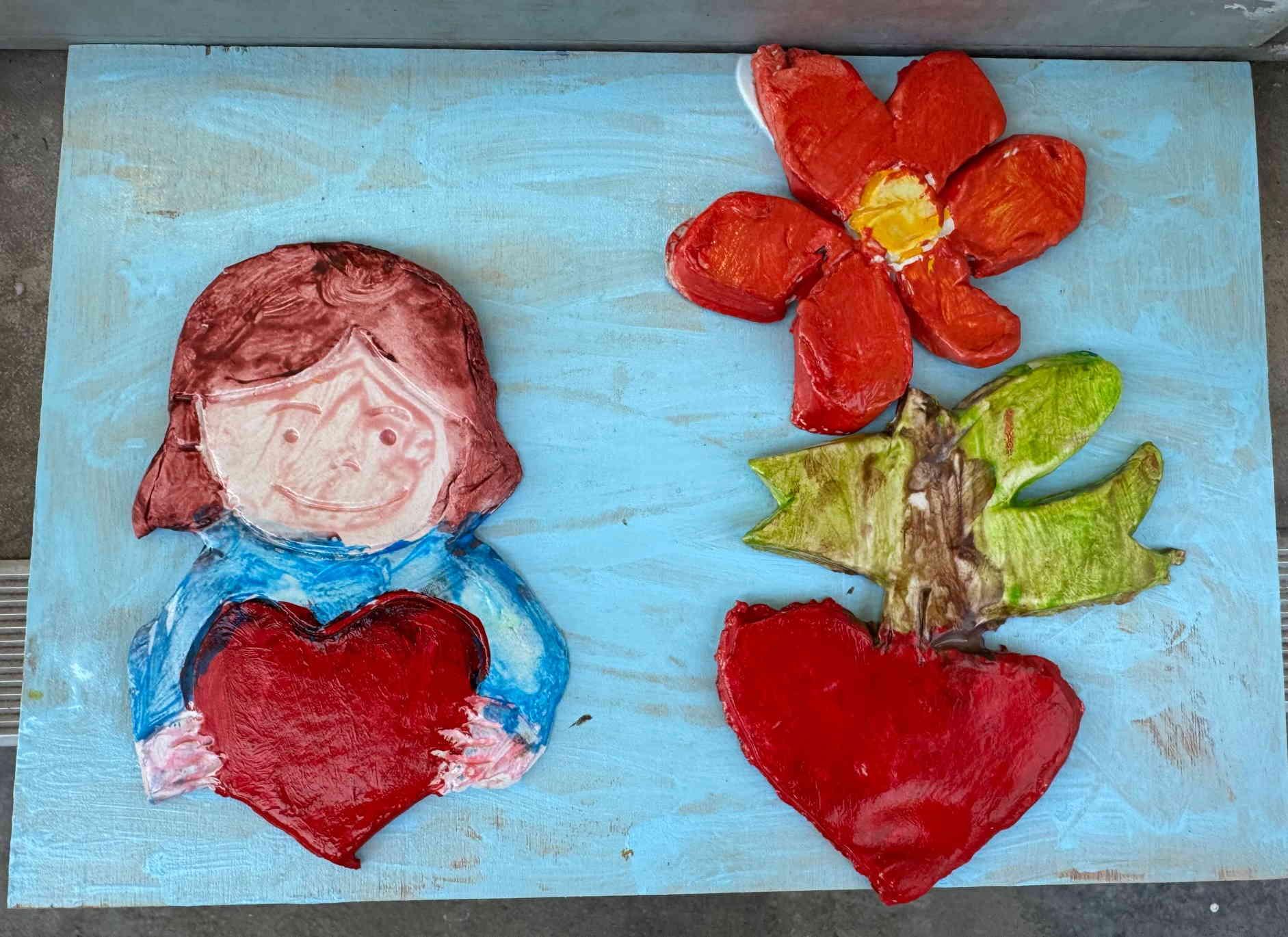 Τοποθετούμε και κολλάμε τις πήλινες δημιουργίες πάνω σε ξύλα ή καμβαδάκια και τα παιδιά έχουν επιτοίχια έργα τέχνης