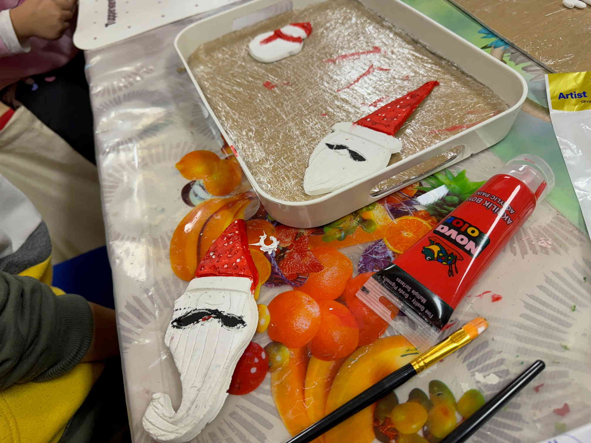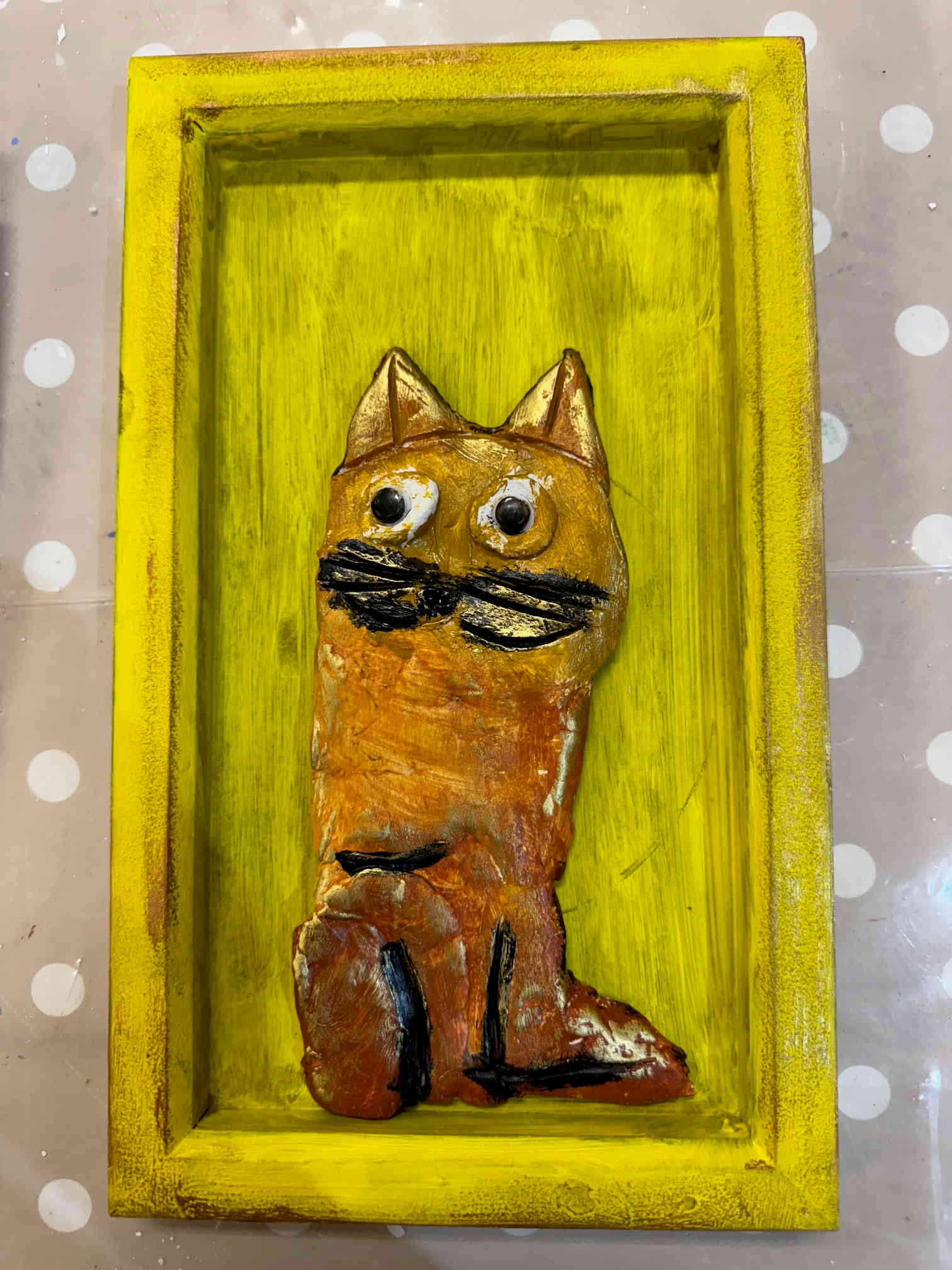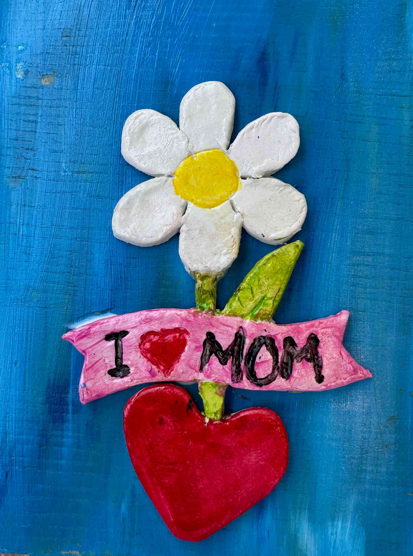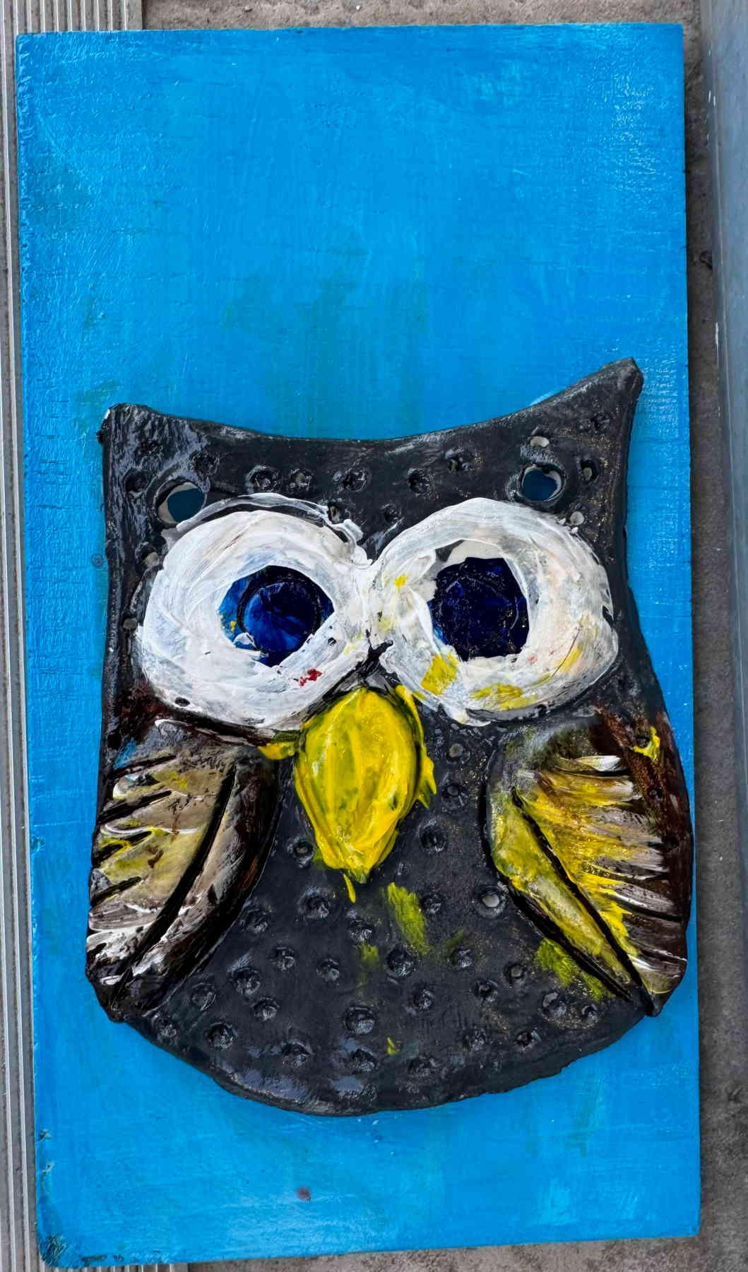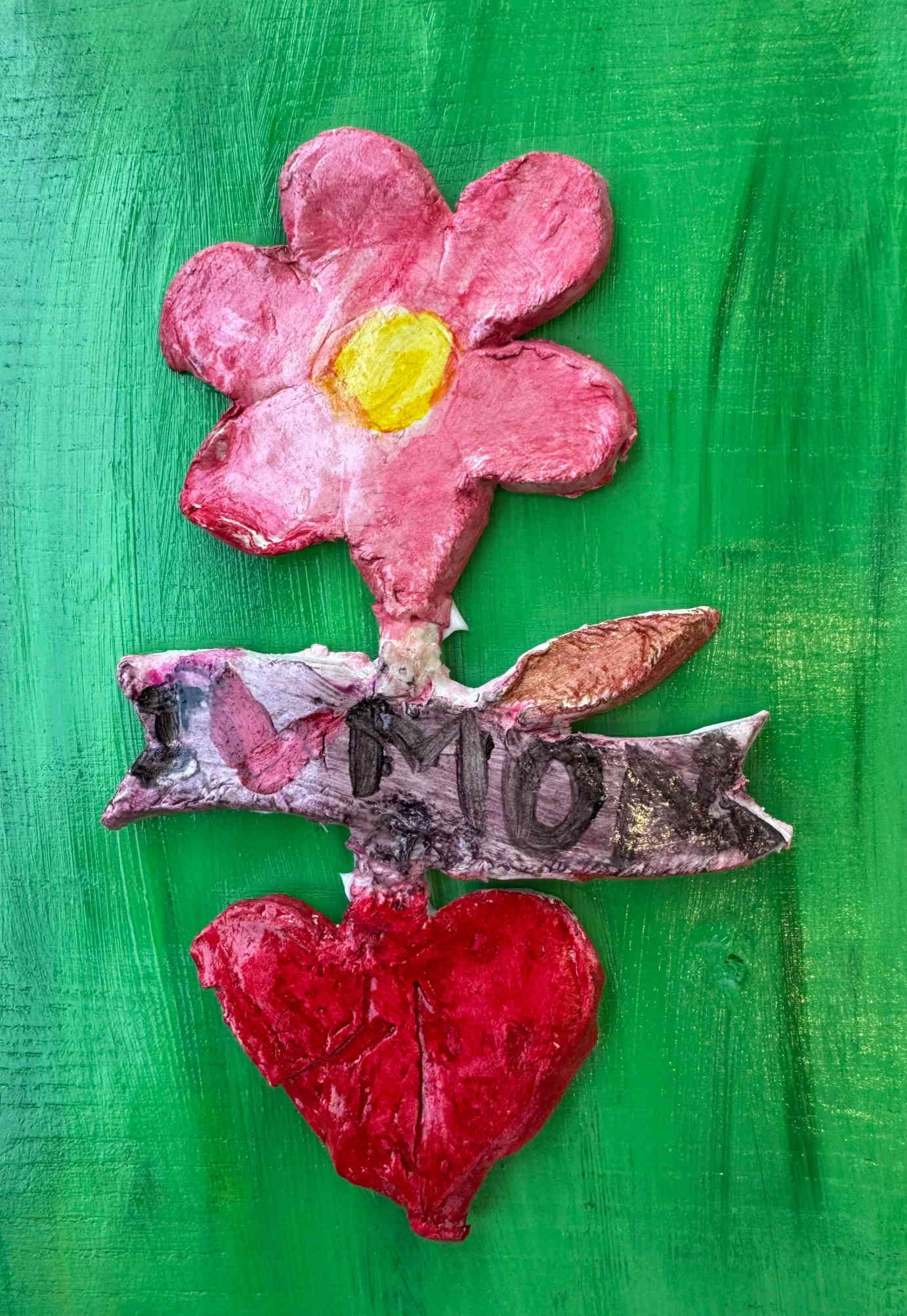 Τοποθετούμε και κολλάμε τις πήλινες δημιουργίες πάνω σε ξύλα ή καμβαδάκια και τα παιδιά έχουν επιτοίχια έργα τέχνης