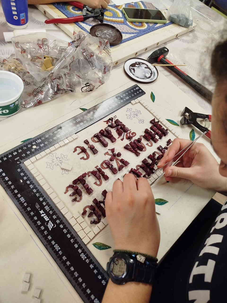Στον «Χρωστήρα», στο εργαστήριο του Ψηφιδωτού, διδάσκουμε όλες τις τεχνικές που θα βοηθήσουν τον εκπαιδευόμενο να κατανοήσει όλο το πεδίο της ψηφιδογραφίας και να αποδώσει με τον καλύτερο δυνατό τρόπο το έργο του. Στο πρόγραμμά μας περιλαμβάνεται βασική θεωρητική κατάρτιση. Με έντυπο υλικό που παρέχεται από τον «Χρωστήρα», φροντίζουμε για την σωστή επιμόρφωση των μαθητών που απαρτίζουν το εργαστήριο του Ψηφιδωτού.