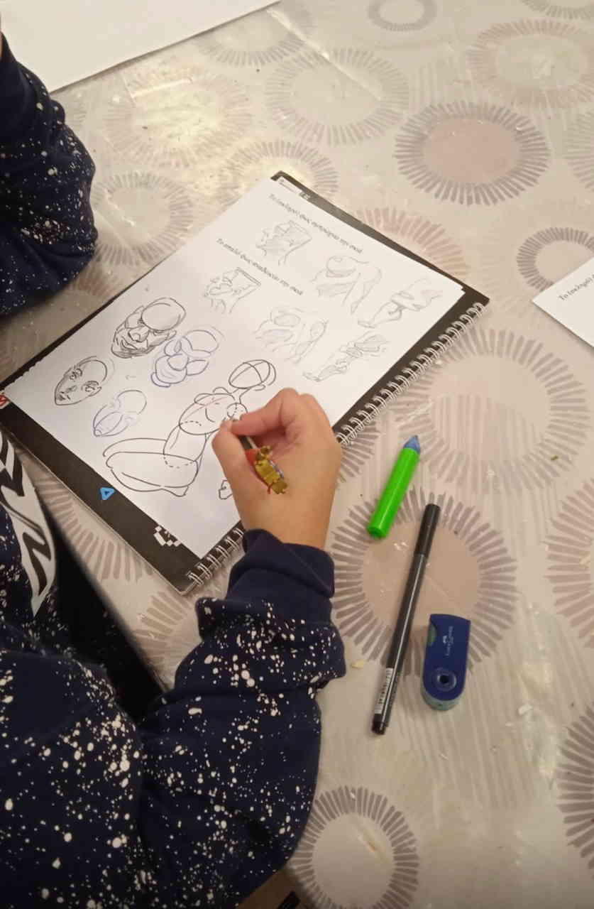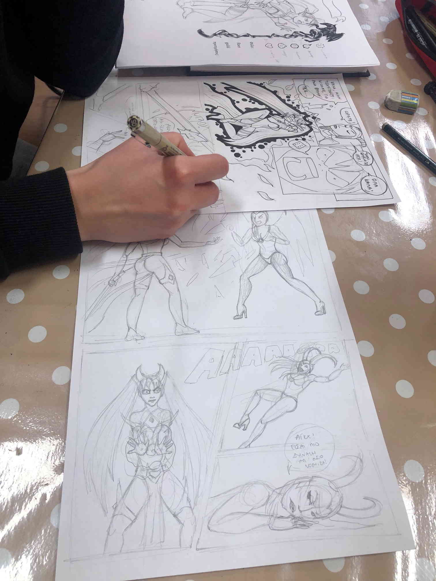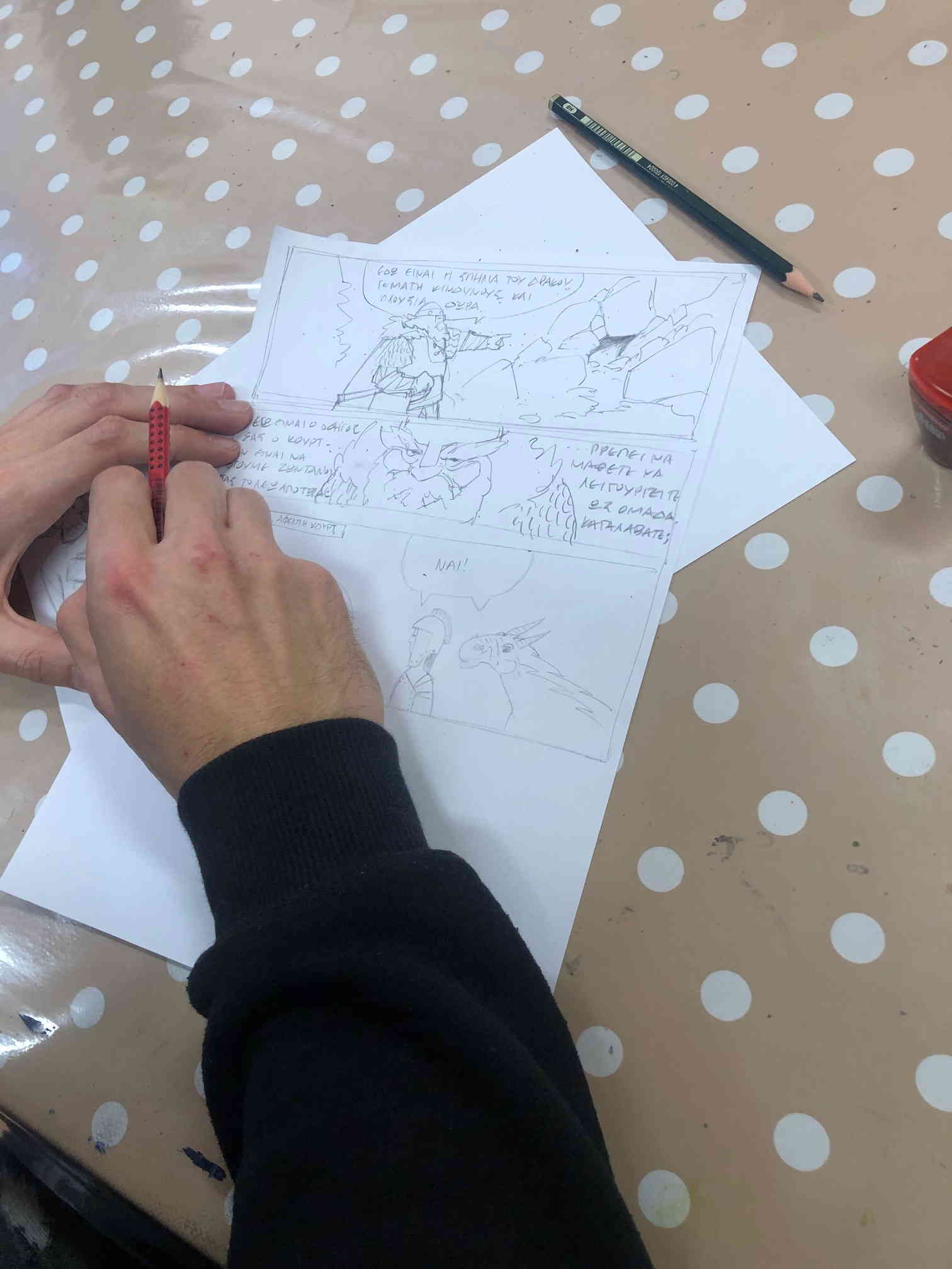 εκμάθηση της λειτουργίας των βασικών στοιχείων του κόμικ, όπως καρέ, μπαλονάκι, λεζάντα, πλαίσιο κ.α.