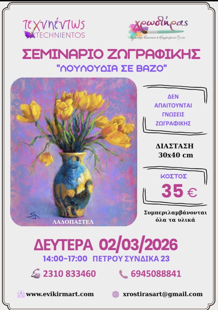 ΟΛΟΚΛΗΡΩΘΗΚΕ ΜΕ ΕΠΙΤΥΧΙΑ ΤΗΝ ΤΡΙΤΗ 10 ΦΕΒΡΟΥΑΡΙΟΥ του 2026 στις 18:30-20:30 ΤΟ ΣΕΜΙΝΑΡΙΟ ΖΩΓΡΑΦΙΚΗΣ με την ΤΕΧΝΙΚΗ της ΑΚΟΥΑΡΕΛΑΣ